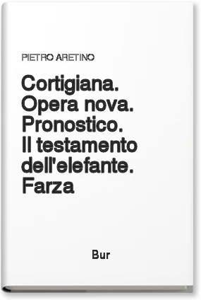 Le opere proposte in questo volume ricostruiscono a vari livelli il percorso culturale dell’Aretino fino al 1534: la prima redazione della Cortigiana (1525), commedia che mette in scena una divertita rappresentazione icastica della Roma vivace e colorita dei papi medicei; l’Opera nova (1512), raccolta “scolastica” di versi in linea col fortunato filone della lirica tardo-quattrocentesca, qui riproposta in edizione integrale, e il Pronostico del 1534, che tramanda sferzanti giudizi satirici contro il papa e l’imperatore, coinvolgendo i principi e i regnanti di mezza Europa. L’Appendice contiene due scritti burleschi, il Testamento dell’Elefante (1516) e la Farza (1519-1521), tradizionalmente attribuiti all’Aretino: operette godibili e ingiustamente dimenticate la cui pubblicazione conserva il sapore di una riscoperta letteraria e storica.