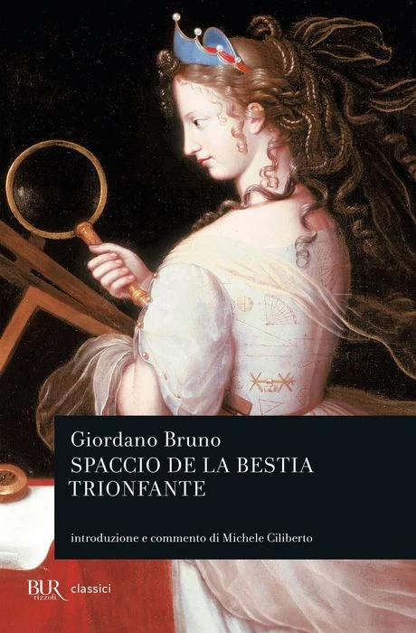 Pubblicato a Londra nel 1584, lo Spaccio de la bestia trionfante sostiene l’urgenza di una riforma morale: bisogna “spacciare” i simboli e i culti negativi che infestano l’animo umano. I tre dialoghi che compongono il volume si svolgono tra gli dei, convocati da Giove per liberare i cieli dalle bestie che hanno dato il nome alle costellazioni e che simboleggiano le false virtù. Giove spiega che i culti sono stati istituiti dagli dei solo per far vivere gli uomini nella pace: non esistono, quindi, religioni vere e religioni false, esistono religioni utili e religioni dannose. E l’efficacia di una religione si può misurare solo sugli effetti positivi o negativi che produce nella società. Attraverso una critica dell’etica cristiana, Bruno si fa così sostenitore di un audace progetto politico, che intende porre il culto religioso al servizio dello Stato e della pace.